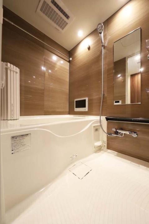 システムキッチン、2口ガスキッチン、バス・トイレ別、ユニットバス、温水洗浄付き暖房便座、24H換気浴室換・乾・暖、浴室テレビ付き、追炊機能付きバス、室内洗濯機置場、独立洗面台、洋室、フローリング、24時間換気システム、2F以上、エアコン、BS対応、CS110°対応、地デジ対応、都市ガス、排水(公共下水)、シューズボックス、インターホン(TV)、TVモニター付オートロック、エレベータ、バルコニー、宅配ボックス、メールボックス
