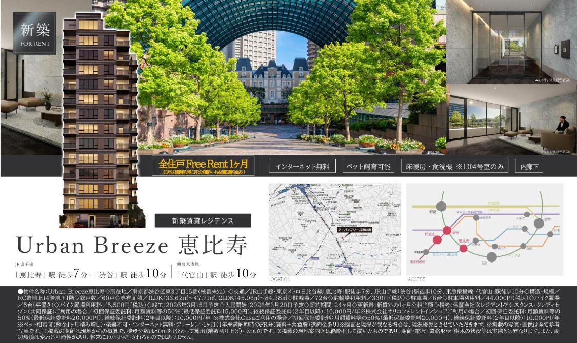 【Urban Breeze 恵比寿】を初期費用20万円・フリーレント1ヶ月で入居する方法!