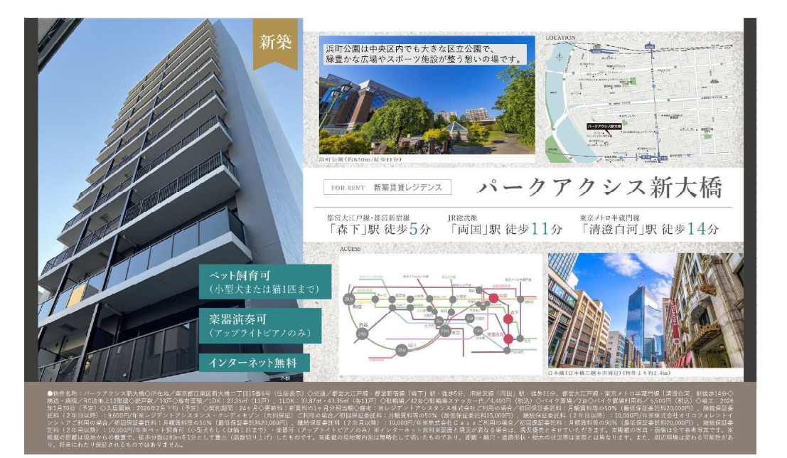 【パークアクシス新大橋 】を仲介手数料0円・フリーレント1ヶ月で入居する方法!