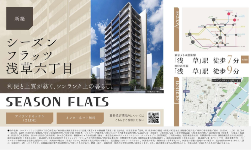 【シーズンフラッツ浅草六丁目 】を初期費用18万円・フリーレント1ヶ月で入居する方法!