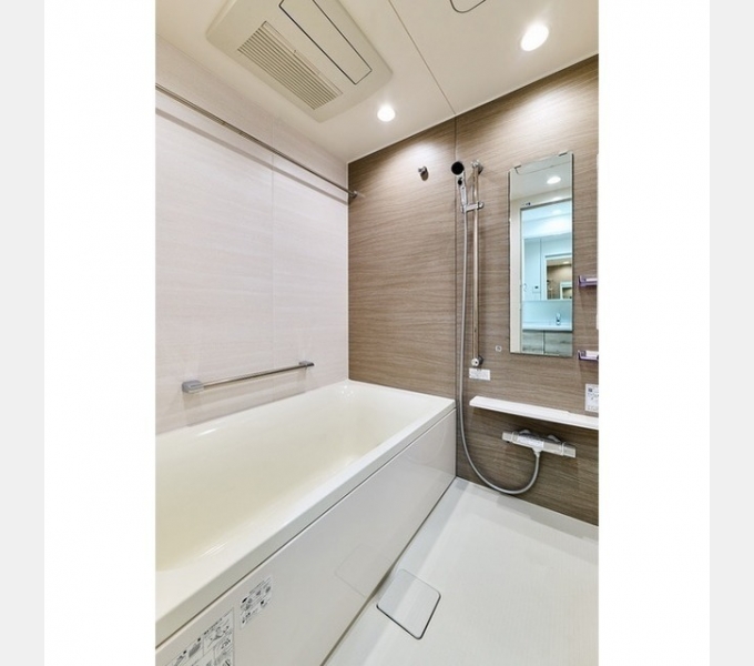 宅配BOX(設備)、メールボックス、エレベーター(設備)、TVモニター付インターホン、オートロック(設備)、24時間ゴミ出し可(設備)、BS対応可(設備)、CS対応可(設備)、壁掛けエアコン3台(設備)、システムキッチン(設備)、グリル、温水洗浄便座、浴室乾燥機能(設備)、追焚機能(設備)、独立洗面化粧台、ダブルロック、ディンプルキー(設備)、ピクチャーレール、床暖房(設備)、防音サッシ(設備)、室内物干し、防犯カメラ、シューズWIC