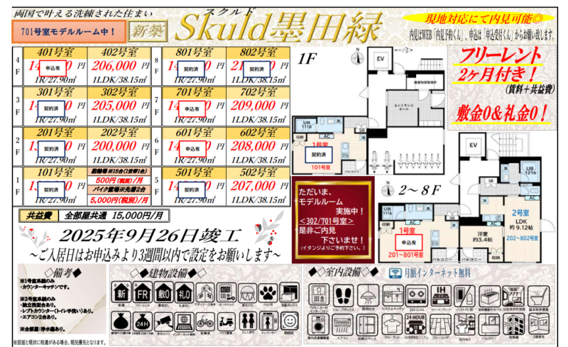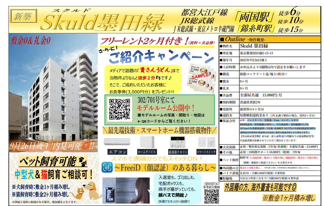 仲介手数料0円・フリーレント2ヶ月で入居者募集中!